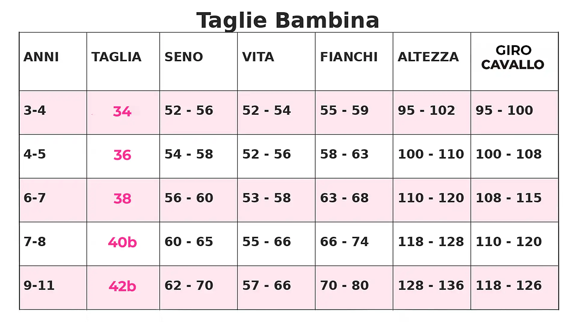 Le taglie dei capi di abbigliamento per la danza realizzati da Bolero seguono misure standard, ma — come accade per ogni brand — possono esserci leggere